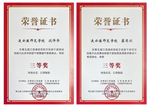 江苏高校百校万名团干部思政技能大比武是全省高校思政教育领域的重要赛事,旨在以赛促学、以赛促教,提升团干部思政教育实效性。我校师生在第五届江苏高校百校万名团干部思政技能大比武中荣获三等奖4项。