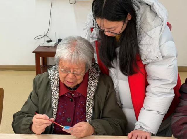 初等教育学院志愿走进市社会福利中心,开展“以爱相伴,点亮银龄”树叶拓印志愿服务活动志愿者们精心甄选形态各异的树叶、调配色彩鲜亮的颜料,一对一俯身相伴,手把手指导老人们蘸取颜料、按压树叶、勾勒轮廓,细致讲解拓印技巧,耐心解答制作疑问。拓印间隙,志愿者们围坐在老人身边,与他们闲话家常、倾听岁月故事,关切询问饮食起居与身体状况,用真诚的话语、温暖的陪伴,驱散孤单。志愿者们将春日的暖意与青年的敬意,送到老人心中,让雷锋精神在关爱银龄的实践中,传递温度、彰显担当。